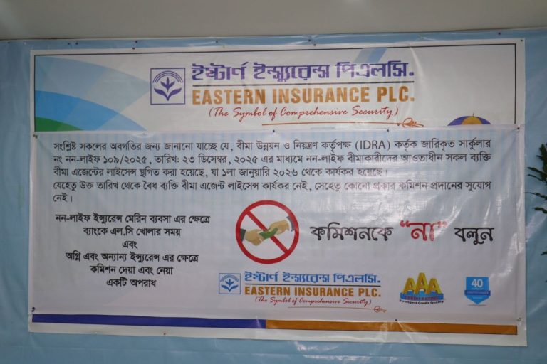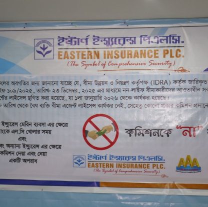 “কমিশনকে না বলুন” শীর্ষক একটি সচেতনতা মূলক মিটিং ২৩ এপ্রিল ২০২৬ তারিখে ইষ্টার্ণ ইন্স্যুরেন্স পিএলসি.-এর হেড অফিসে হেড অফিস অনুষ্ঠিত হয়।